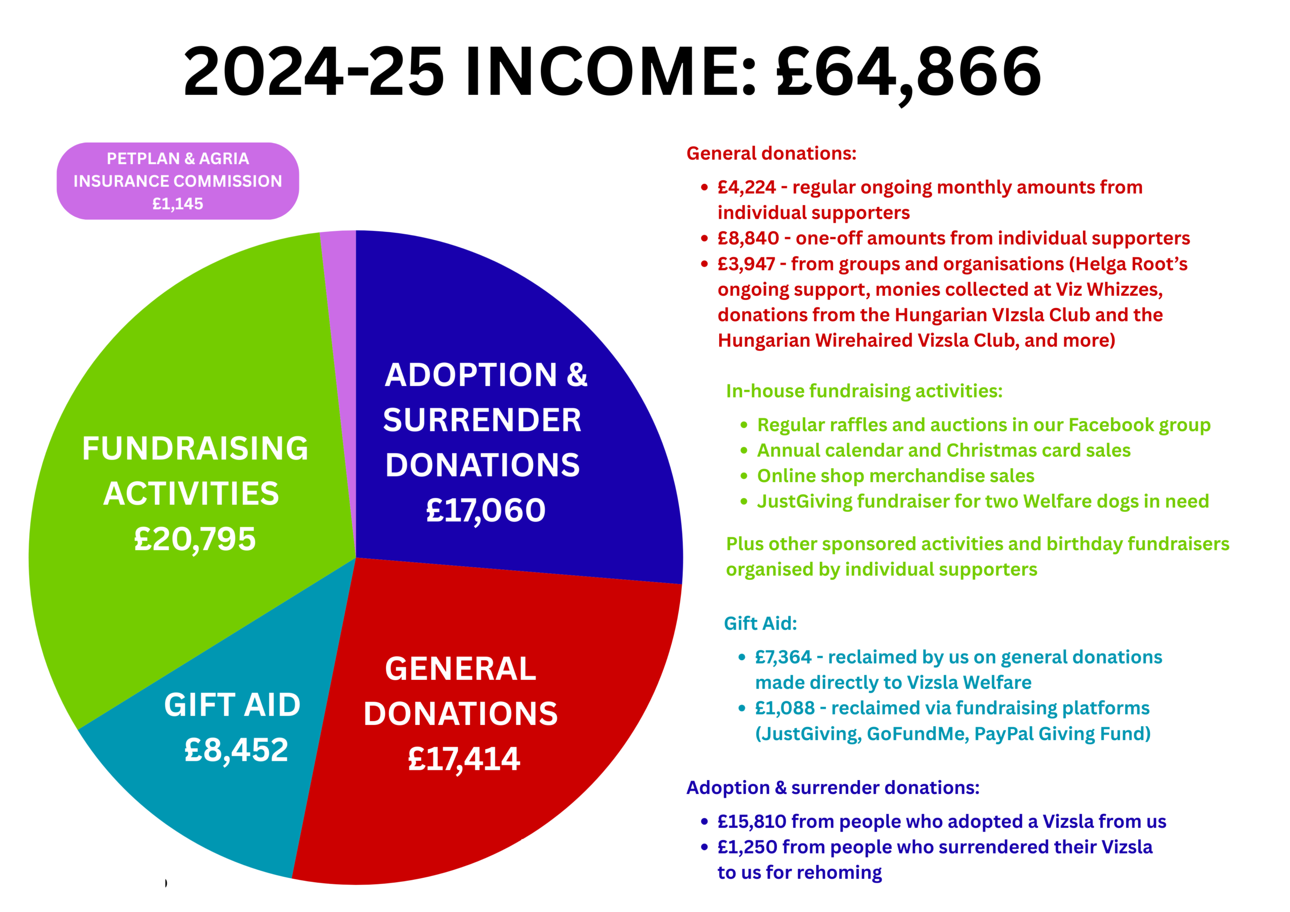 When you make a donation to a charity, you have every right to know how that money will be used. We want to be as transparent as possible about our finances in order to reassure all of our wonderful donors that we are using their money wisely and effectively to help as many Vizslas as possible.